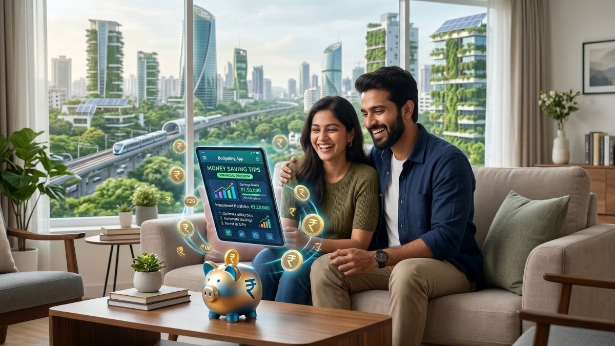 पैसे वाचवण्यासाठी Money saving tips वापरून आर्थिक स्वातंत्र्य मिळवणारे तरुण जोडपे.